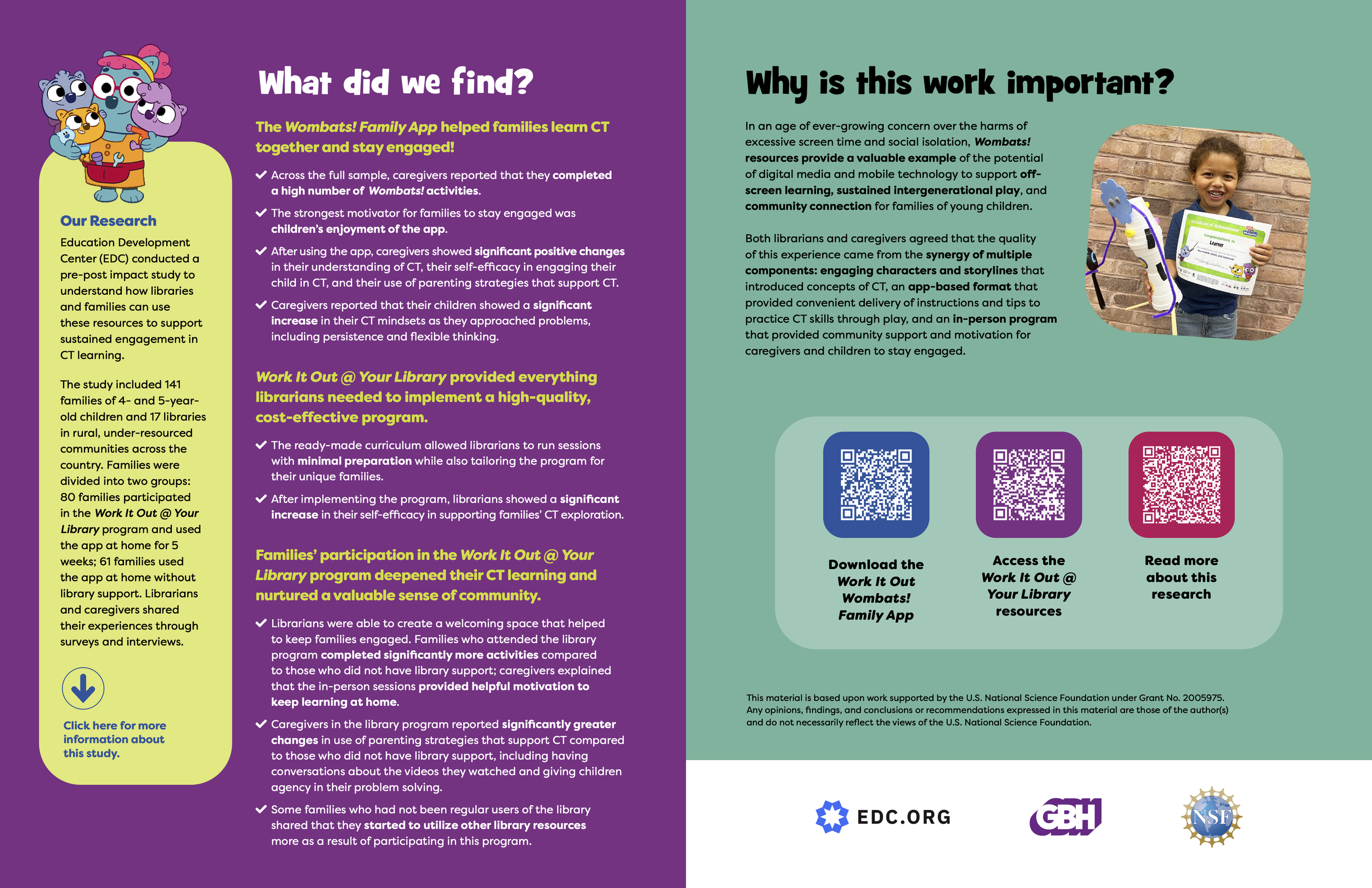 The Work It Out Wombats Family App helps parents engage in fun and educational computational thinking activities with their children at home.